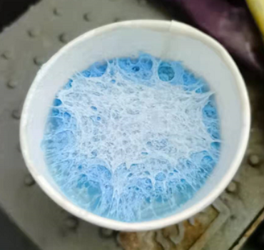 | 加入酸(盐酸、硫酸、醋酸均可) | 最后形成粘块 |
