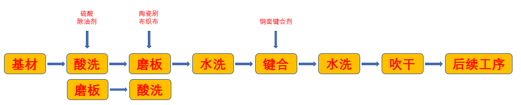 在PCB生产过程中,感光树脂层(膜层,包括防焊油墨层、干膜以及湿膜等)与铜面(基材中的铜面层,称为基材层或铜面层)之间的结合力,需要稳定持久;确保在整个制程中不会移动、脱落、位移。因此,需要加强铜面与膜层的粘附力。